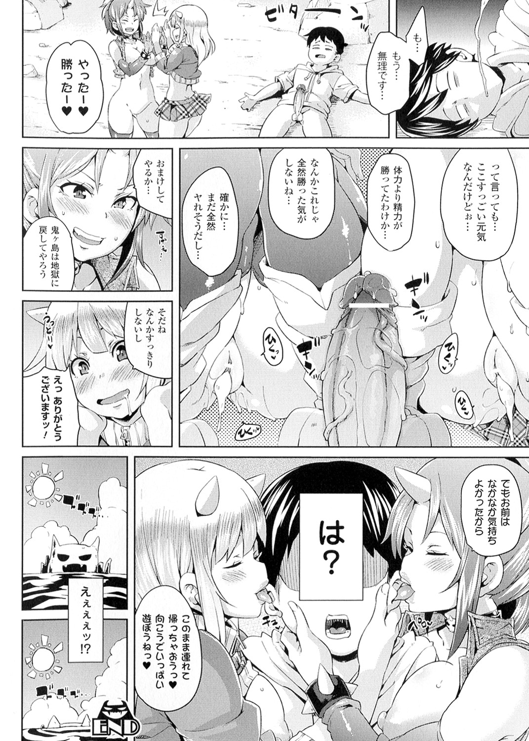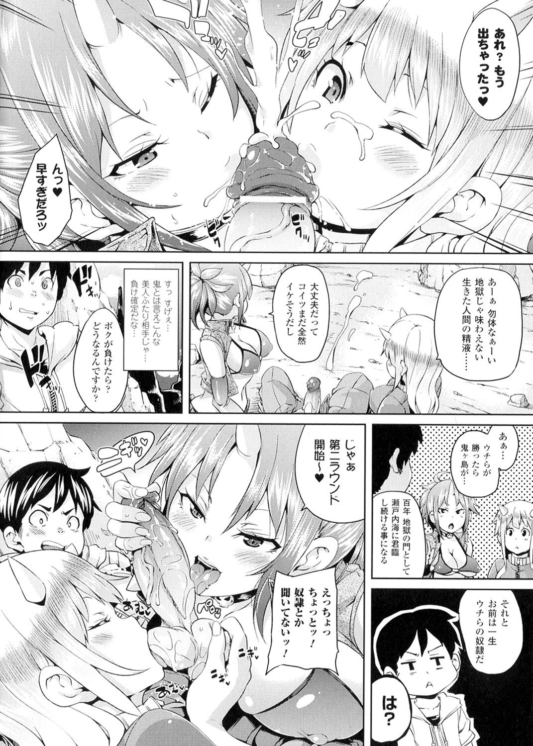 鬼ヶ島で桃太郎の末裔のショタを誘惑しちゃう淫乱お姉さん…Wフェラや騎乗位で生ハメ中出しハーレムセックスしちゃう